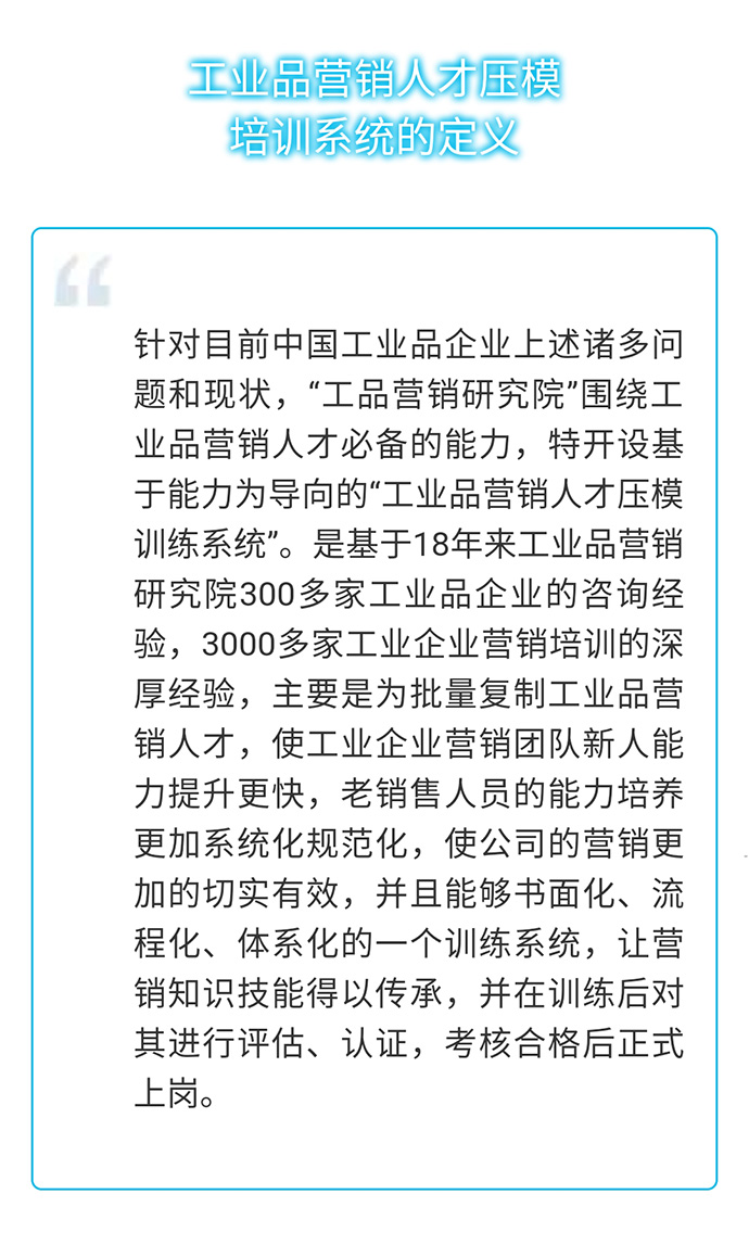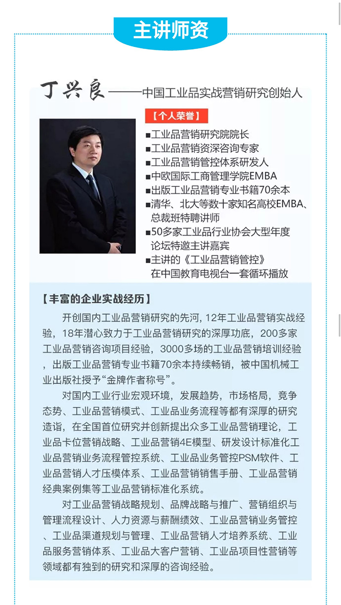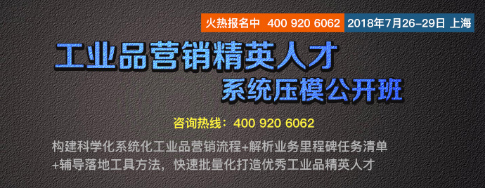 【人才壓模開課預(yù)告】7月26-29日 工業(yè)品營(yíng)銷精英人才壓模系統(tǒng)公開課 點(diǎn)擊次數(shù):5968發(fā)布時(shí)間:2018-6-22 15:54:14