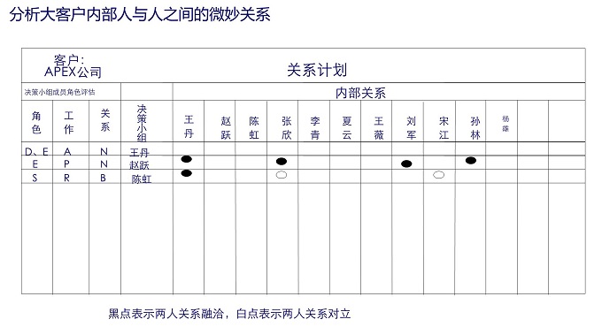 用通俗語言提煉了“同流不合污的五句經(jīng)典---不能同流怎能交流、不能交流怎能交心、不能交心怎能交易、不能交易怎能交錢、不能交錢怎能交貨”、“建立信任感的九句話--合作來源于信任;信任來源于信心;信心來源于了解;了解來源于接觸;接觸來源于感覺;感覺來源于參與;參與來源于意愿;意愿來源于勾搭”、“大客戶內(nèi)部關(guān)系搞定的三句經(jīng)典—消滅反對者、拉攏中立者、擴(kuò)大支持者”等;更為了協(xié)助學(xué)員更好地落地提出了—大客戶攻關(guān)的五個工具、大客戶降價的二個關(guān)鍵工具、分析教練(結(jié)果導(dǎo)向型線人)的判斷工具等。