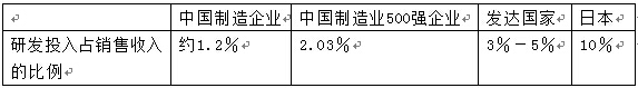 國(guó)內(nèi)外制造企業(yè)研發(fā)投入占銷售收入比例對(duì)比