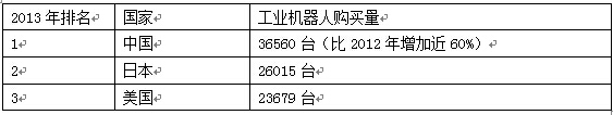 2013年工業(yè)機(jī)器人購(gòu)買量前三名 (以下數(shù)據(jù)來(lái)源于德國(guó)世界機(jī)器人聯(lián)合會(huì))