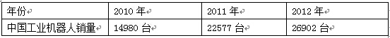 2010-2012年中國(guó)工業(yè)機(jī)器人銷量情況
