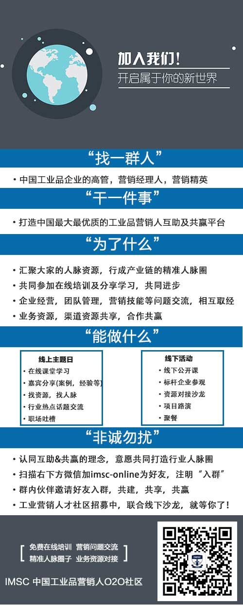 【活動】IMSC中國工業(yè)品營銷人O2O社區(qū)招募令 等你來約!