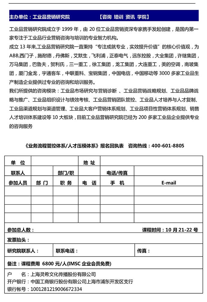 | 下一條:【往期公開課】10月28-30日營銷中層經(jīng)理人才壓模訓(xùn)練系統(tǒng)公開班 |