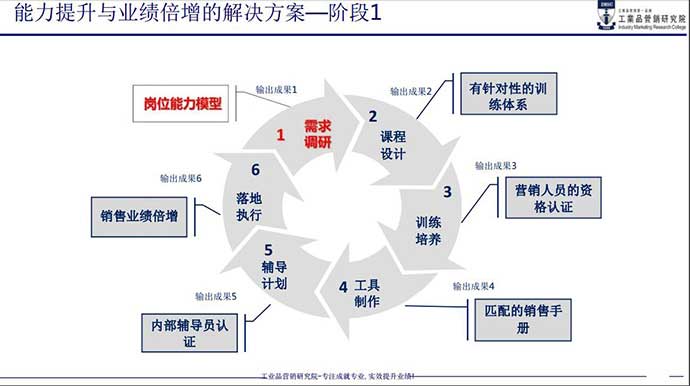 本次培訓,通過全面營銷人員素質(zhì)能力模型的構建和分析,量身定制營銷培訓方案,旨在系統(tǒng)化提升營銷人員的綜合銷售能力,提升營銷人員的職業(yè)化素養(yǎng),規(guī)范工業(yè)品營銷業(yè)務流程及階段里程碑任務,系統(tǒng)化訓練工業(yè)品營銷的技能,咨詢式一對一落地輔導,導入系統(tǒng)規(guī)范化的銷售手冊,全程采用調(diào)研+分析+分層級定制化+分階段系統(tǒng)培訓+案例演練+工具導入+咨詢式落地輔導+銷售手冊導入+跟蹤輔導
