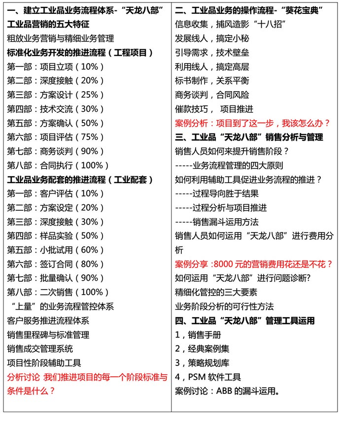 工業(yè)品業(yè)務流程管理與七步分析法 | 1天 | 2500元/人 | 7月10-12號 | 8月21-23號 | 10月23-25號 | |||||