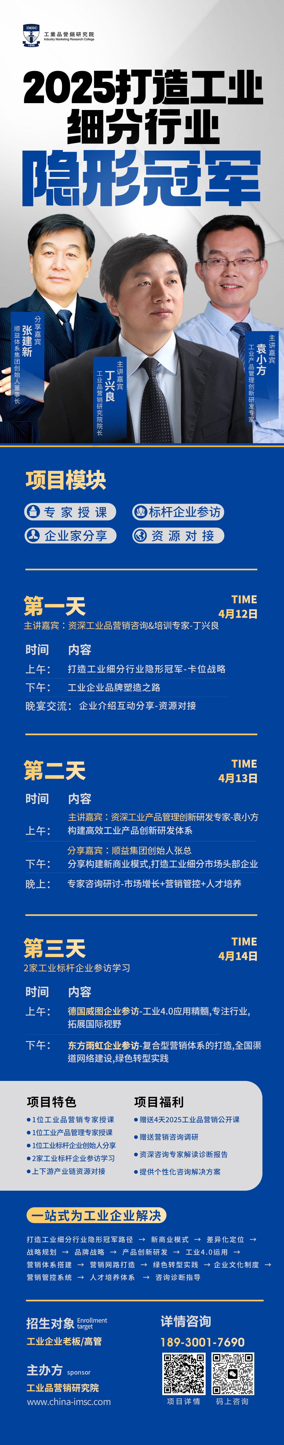 2025打造工業(yè)細(xì)分行業(yè)的隱形冠軍—專家授課+標(biāo)桿企業(yè)參訪招生中