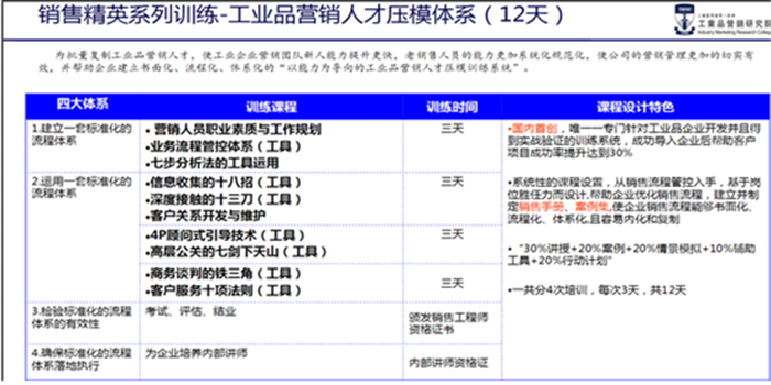 針對公司營銷人員的能力進行了系統(tǒng)的分析以及全方位改進的培訓體系。