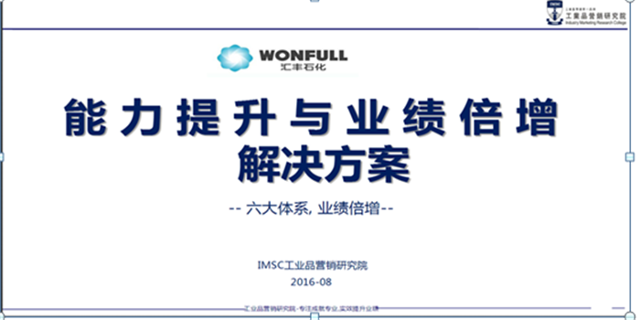 2016年9月,山東匯豐石化集團有限公司特邀工業(yè)品營銷研究院為其企業(yè)營銷團隊進行為期一年的《銷售精英人才壓模系統(tǒng)課程》培訓+全面輔導訓練,以丁老師為主導的講師團隊根據(jù)企業(yè)所存在的問題提出了一系列解決方案更針對其業(yè)務流程管控“天龍八部”、實操技巧、項目分析等進行系統(tǒng)的培訓。