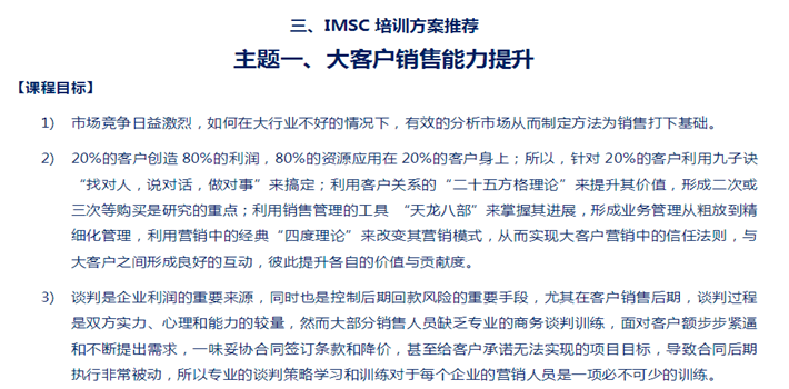 工業(yè)品營銷研究院的導(dǎo)師團(tuán)隊(duì)經(jīng)過詳細(xì)的調(diào)研后為企業(yè)提供了完善的培訓(xùn)方案。