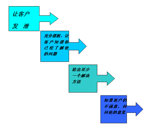 從心理學(xué)上講,有一種“心理凈化”現(xiàn)象:當(dāng)用戶不滿時(shí),他一定心煩意亂,這時(shí)他只想做兩件事情:表達(dá)他的感情和想使他的問(wèn)題得到解決。這就是經(jīng)常提到的“先解決心情,再解決事情”。