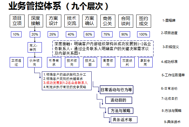 因此,天龍六部體系之中,結果非常重要,但是控制過程其實更加重要。然而,大部分的銷售人員往往只看中結果,忽視了過程細節(jié),每一個階段,只是做了一些,但是做得不深入,好像是做了,但是沒有做完成,一步一步都是粗放,結果就可想而知了。俗話說,細節(jié)決定成敗,如果沒有對這些過程進行控制,就不會有最終的結果。