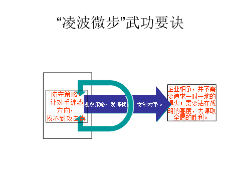 企業(yè)相爭,并不需要追求一時一地的得失;需要站在戰(zhàn)略的高度,去謀取全局的勝利。這就是“凌波微步”之招所追求的效果。