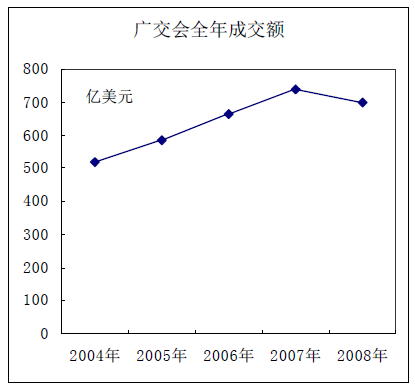 廣交會(huì)的發(fā)展一直呈平穩(wěn)上升趨勢(shì),但在2008 年,由于受到金融海嘯因素的影響,參展商與交易額均出現(xiàn)不同程度的減少,此屆廣交會(huì)第一期出口成交額下降了20.8%,第二期成交額下降14.9%。(圖2-3)