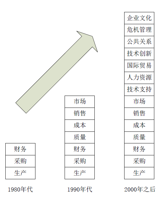 1980 年代初,市場上商品稀缺,是賣方的市場,只要能生產(chǎn)出產(chǎn)品就能賣出去。那時(shí)企業(yè)的主要任務(wù)就是生產(chǎn),不需要分銷。企業(yè)的銷售模式基本上是坐等客戶上門來買貨。是“守株待兔”式的坐銷模式來銷售產(chǎn)品。 1990 年代時(shí),市場由賣方市場向買方市場過渡,競爭激烈化。企業(yè)和企業(yè)之間靠的是整體實(shí)力的競爭。 2000 年以后,隨著中國加入WTO,進(jìn)入激烈的全球化市場競爭時(shí)代。企業(yè)必須以盡可能短的時(shí)間,以顧客能接受的價(jià)格提供個(gè)性化的產(chǎn)品。企業(yè)和企業(yè)之間競爭是全方位、復(fù)雜 的、動態(tài)的競爭,覆蓋到生產(chǎn)、采購、財(cái)務(wù)、質(zhì)量、成本、銷售、市場、技術(shù)支持、人力資源、國際貿(mào)易、技術(shù)創(chuàng)新、公共關(guān)系、危機(jī)管理、企業(yè)文化等多個(gè)層面。 影響企業(yè)成敗的因素范圍變廣 從本地市場到全國市場再到全球市場,影響企業(yè)成敗因素的范圍也從本地?cái)U(kuò)大到全國擴(kuò) 大到全球。而在全球范圍,由于語言、文化的差異,無法準(zhǔn)確、及時(shí)的掌握資訊,影響決策的效率與效果。 一只南美洲亞馬遜河流域熱帶雨林中的蝴蝶,偶爾扇動幾下翅膀,可能在兩周后引起美國德克薩斯引起一場龍卷風(fēng)。其原因在于:蝴蝶翅膀的運(yùn)動,導(dǎo)致其身邊的空氣系統(tǒng)發(fā)生變化,并引起微弱氣流的產(chǎn)生,而微弱氣流的產(chǎn)生又會引起它四周空氣或其他系統(tǒng)產(chǎn)生相應(yīng)的變化,由此引起連鎖反應(yīng),最終導(dǎo)致其他系統(tǒng)的極大變化。一件看似不重要的變化就能夠?qū)е缕髽I(yè)的成敗。 1980年,IBM公司選中微軟公司為其新PC機(jī)編寫操作系統(tǒng)軟件,IBM-PC機(jī)的普及使MS-DOS取得了巨大的成功,因?yàn)槠渌鸓C制造者都希望與IBM兼容,它成了PC機(jī)的標(biāo)準(zhǔn)操作系統(tǒng)。到1984年,微軟公司的銷售額超過1億美元,最終造就了全球第一大軟件公司。而IBM公司自己在PC市場上的份額都不是第一位。 速度競爭 節(jié)奏越來越快是人們對這個(gè)時(shí)代的體會。物流、運(yùn)輸?shù)乃俣茸兛炝耍畔⒌膫鬟f加快了,產(chǎn)品變化、產(chǎn)品升級換代的速度也變快了。現(xiàn)代企業(yè)面臨著不可預(yù)測和不斷變化的市場,面對市場激烈競爭,企業(yè)只有快速響應(yīng)市場需求,才能在市場中取勝。 我國著名企業(yè)家張瑞敏對海爾員工說“新經(jīng)濟(jì)時(shí)代對企業(yè)來講制勝的武器就是速度,而這個(gè)速度,就是最快的滿足消費(fèi)者的個(gè)性化需求。”行業(yè)內(nèi)的領(lǐng)先企業(yè)其新產(chǎn)品開發(fā)時(shí)間比一般公司縮短50%,不但在導(dǎo)入初期帶來更大銷售額,而且在整個(gè)生命周期都獲得更大銷量。美國經(jīng)濟(jì)學(xué)家小艾爾弗雷德·錢德勒指出:“現(xiàn)代化的大量生產(chǎn)與現(xiàn)代化的大量分配以及現(xiàn)代化的運(yùn)輸和通訊一樣,其經(jīng)濟(jì)性主要來自速度,而非規(guī)模。”而比爾·蓋茨在其論著《未來時(shí)速———數(shù)字神經(jīng)系統(tǒng)與商務(wù)新思維》中也指出:“速度是企業(yè)成功的關(guān)鍵。” 速度競爭是每一個(gè)志在做強(qiáng)的企業(yè)所必須面對的。 突發(fā)事件帶來的機(jī)遇和危機(jī) 隨著影響企業(yè)成敗的因素的更多、更廣、變化更快,結(jié)果便是突發(fā)性事件對企業(yè)的意義變大。突發(fā)事件既可以給企業(yè)創(chuàng)造機(jī)遇,也可以給企業(yè)帶來不可估量的危機(jī)。 王老吉就很好地運(yùn)用了四川汶川大地震這件突發(fā)事件。 2008年5月,四川汶川大地震后,生產(chǎn)罐裝王老吉的加多寶公司向地震災(zāi)區(qū)捐款一億元,這是迄今國內(nèi)民營企業(yè)單筆捐款的最高紀(jì)錄。通過王老吉方面在地震之前公布的財(cái)務(wù)報(bào)表可以看得出, 2007年在王老吉涼茶業(yè)務(wù)方面的總利潤也就是一億元左右。也就是說,本次汶川地震捐款,等于是捐出了企業(yè)2007年的全部利潤。這無疑使得國人為此感動不已。 在捐款的次日晚,國內(nèi)一知名網(wǎng)絡(luò)論壇出現(xiàn)了一個(gè)標(biāo)題為“讓王老吉從中國的貨架上消失!封殺它!”的帖子。這個(gè)引人注目的標(biāo)題引起了被加多寶義舉所感動的公眾的憤怒,但打開帖子再看,發(fā)帖者所指的“封殺”其實(shí)是要表達(dá)“買光超市的王老吉!上一罐買一罐!”的意思。正話反說產(chǎn)生的強(qiáng)烈反差刺激了無數(shù)公眾跟帖留言,“今年夏天不喝水 要喝就喝王老吉”、“加多寶捐了一億,我們要買光它的產(chǎn)品,讓它賺十億”,類似這樣的跟帖出現(xiàn)在大量網(wǎng)站的論壇上。這篇文章獲得了極高的點(diǎn)擊率,而后又被網(wǎng)友們瘋狂轉(zhuǎn)載,光是論壇的轉(zhuǎn)載就超過3000多條。數(shù)日后,網(wǎng)上甚至出現(xiàn)了王老吉在一些地方賣斷貨的傳言。網(wǎng)絡(luò)上數(shù)量驚人的討論、轉(zhuǎn)載和點(diǎn)擊量,使這一事件引起大量傳統(tǒng)媒體的關(guān)注和跟進(jìn)報(bào)道。 王老吉在汶川地震中的突出表現(xiàn)以及隨后網(wǎng)友們的反應(yīng),說明了現(xiàn)代企業(yè)對外在信息的反應(yīng)速度比較快,有利的抓住了汶川